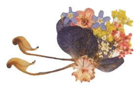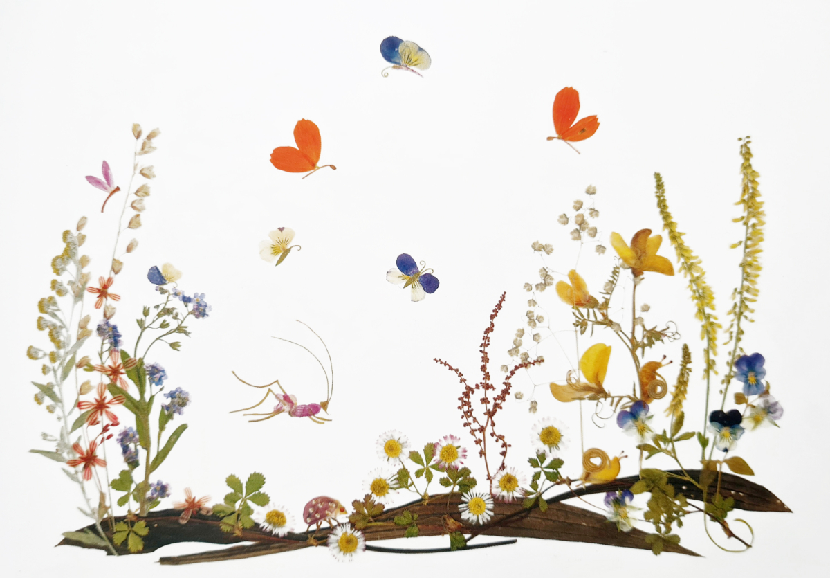 Die Blütenbilder des Zipfelhaus sind mit viel Liebe gearbeitete kleine Kunstwerke aus oft kleinsten Teilen von Blüten, Moosen und Gräsern.